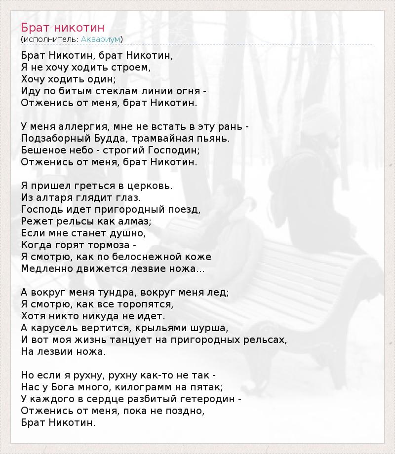 А как ты думаешь, о чем песня "Брат никотин" ?