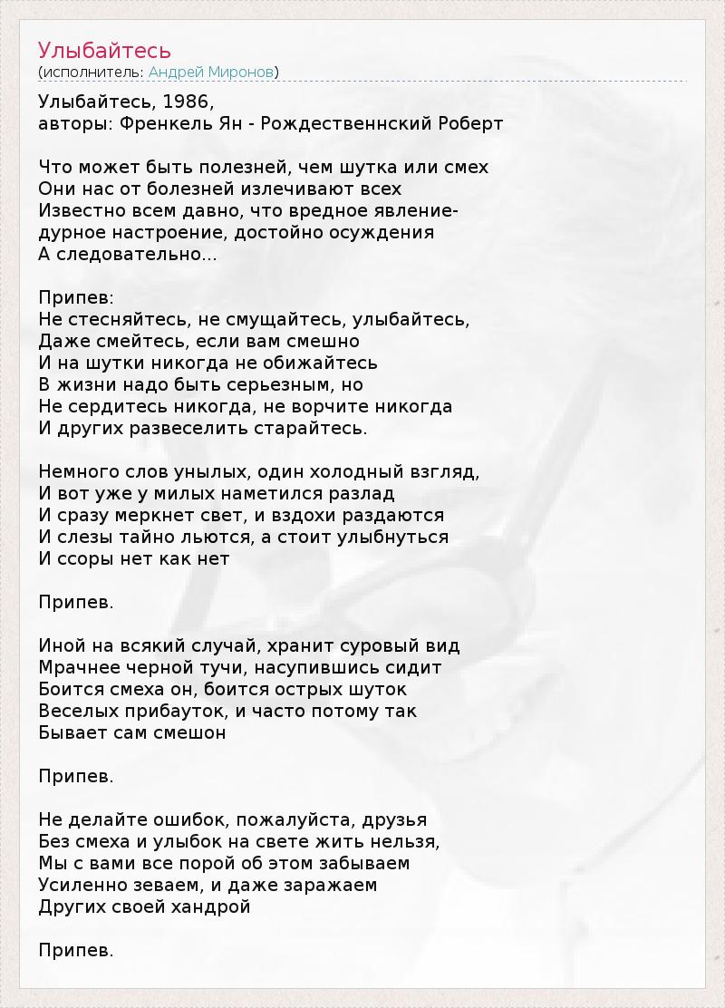 А как ты думаешь, о чем песня "Улыбайтесь" ?