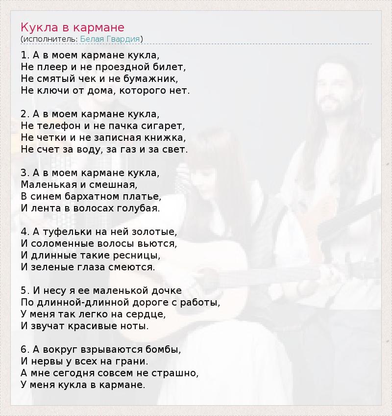 А как ты думаешь, о чем песня "Кукла в кармане" ?