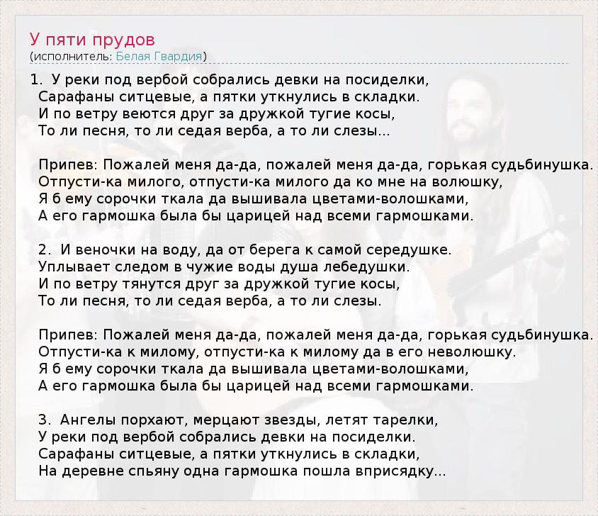 А как ты думаешь, о чем песня "У пяти прудов" ?