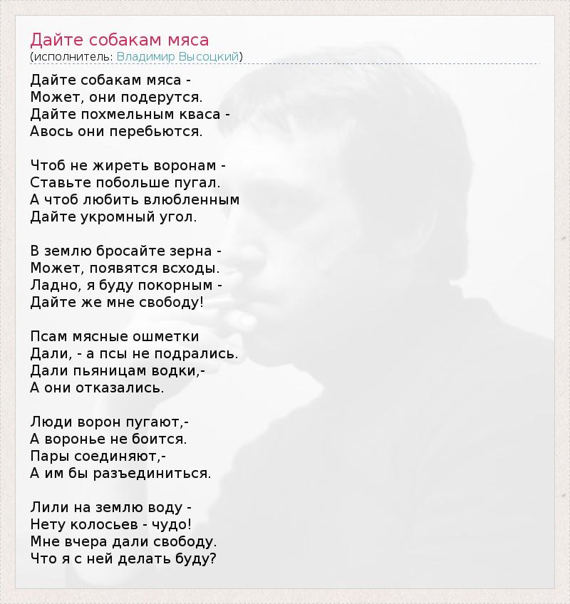 А как ты думаешь, о чем песня "Дайте собакам мяса" ?