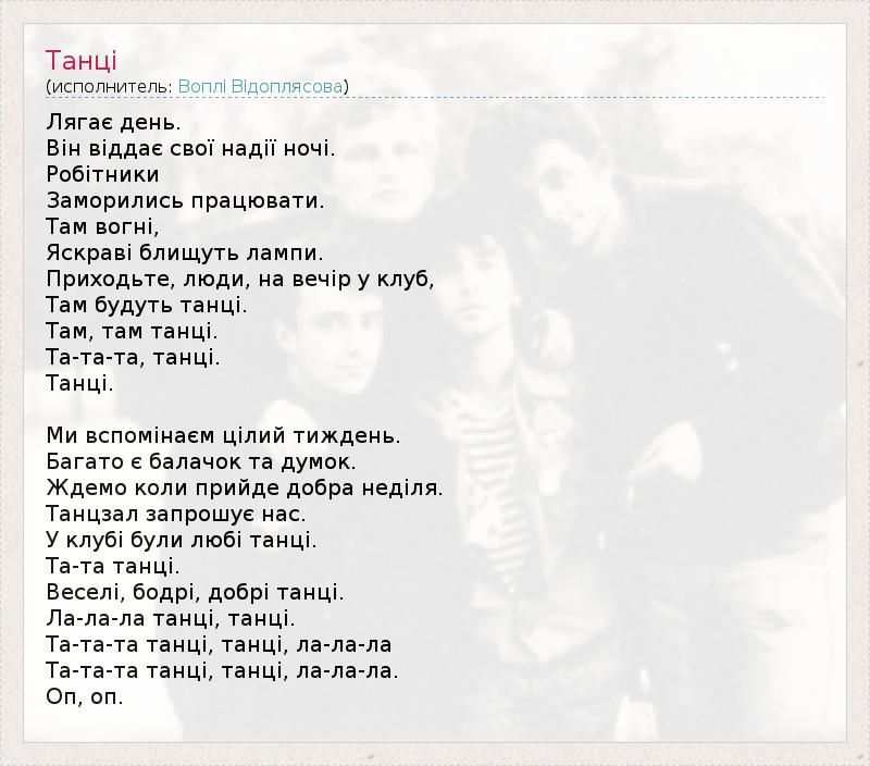 Это интересно:Воплі Відоплясова, ВВ (читается как «Вопли Видоплясова») — украинская рок-группа. Первое выступление группы состоялось в 1987 году.ОснованиеОрганизаторами группы стали гитарист Юрий Здоренко и басист Александр Пипа, которые до этого с 1984 года играли хэви-метал в группе SOS. Переломным моментом для друзей-музыкантов стал 1986 год, когда произошла встреча Здоренко и Пипы с... продолжение