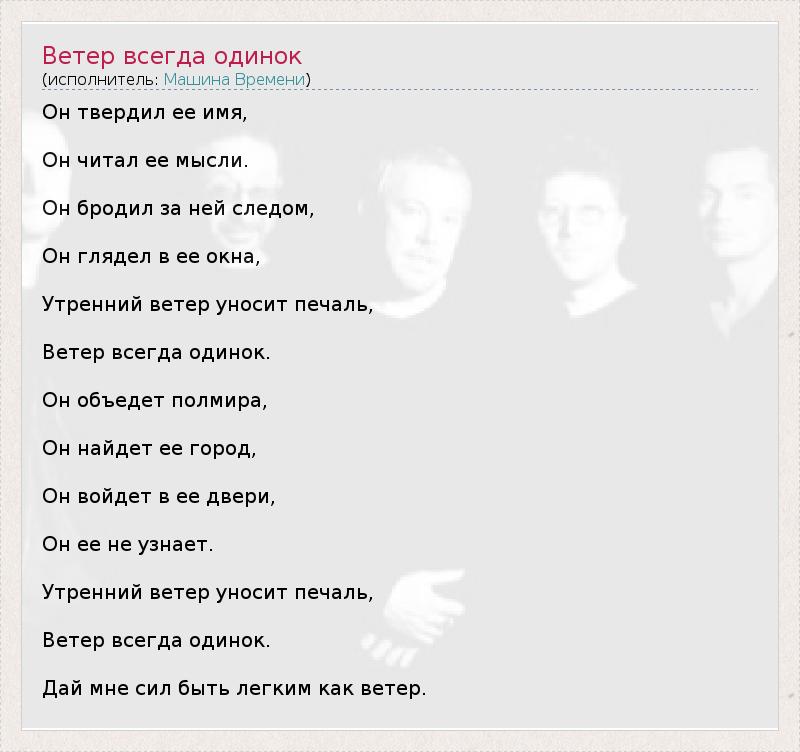 ГлавнаяИсполнителиМашина ВремениВетер всегда одинок