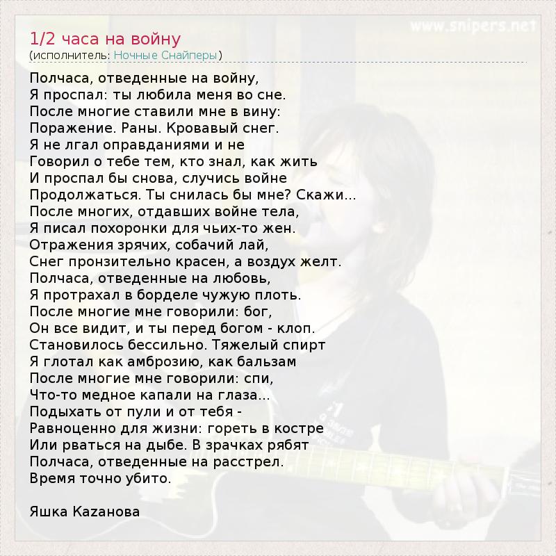 А как ты думаешь, о чем песня "1/2 часа на войну" ?