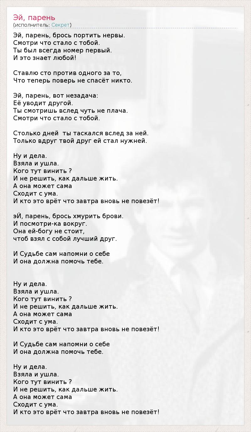 А как ты думаешь, о чем песня "Эй, парень" ?