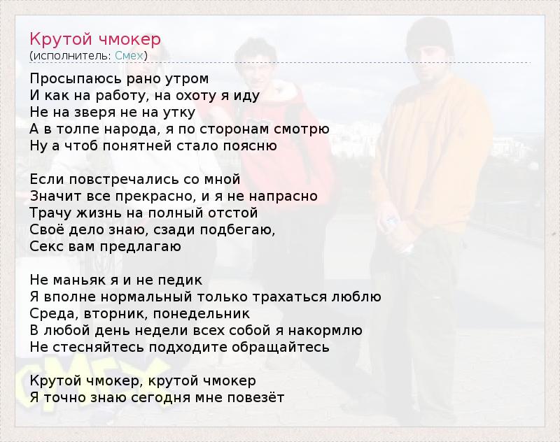 А как ты думаешь, о чем песня "Крутой чмокер" ?