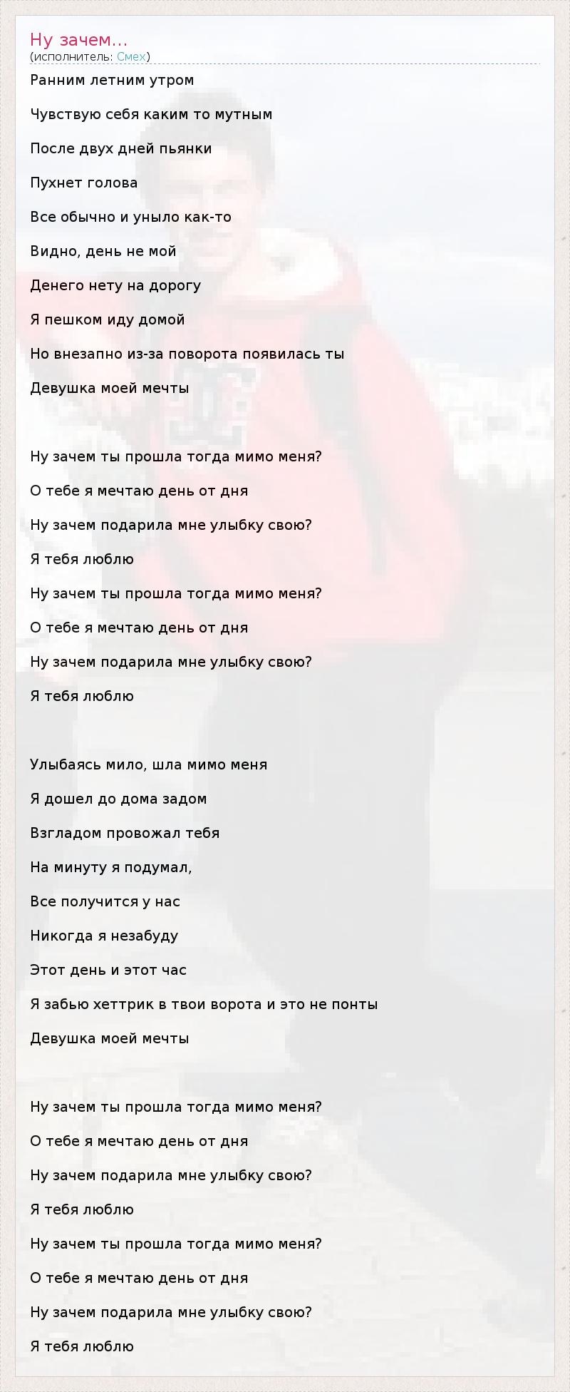 А как ты думаешь, о чем песня "Ну зачем..." ?