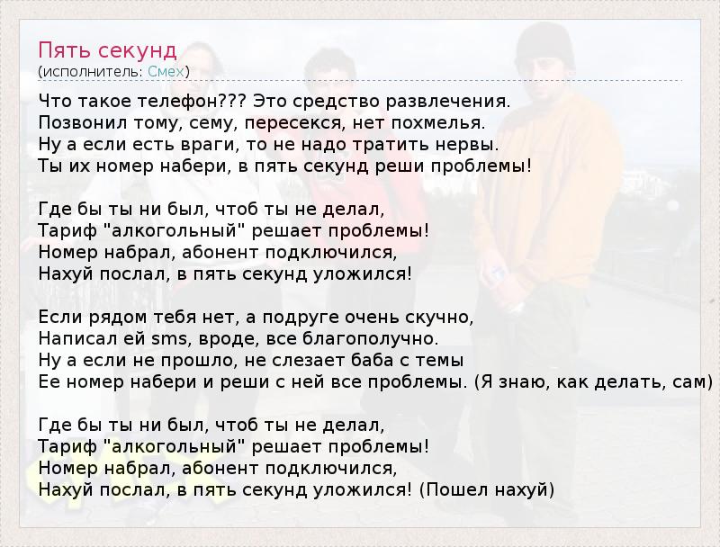 А как ты думаешь, о чем песня "Пять секунд" ?