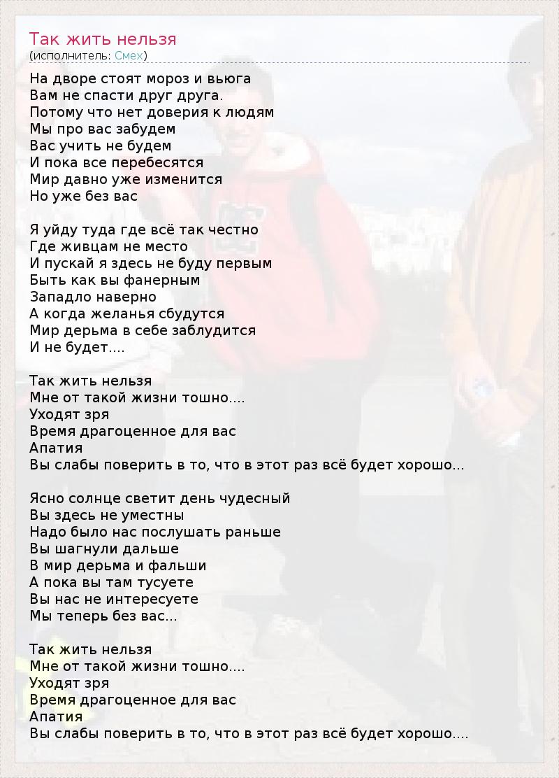 А как ты думаешь, о чем песня "Так жить нельзя" ?