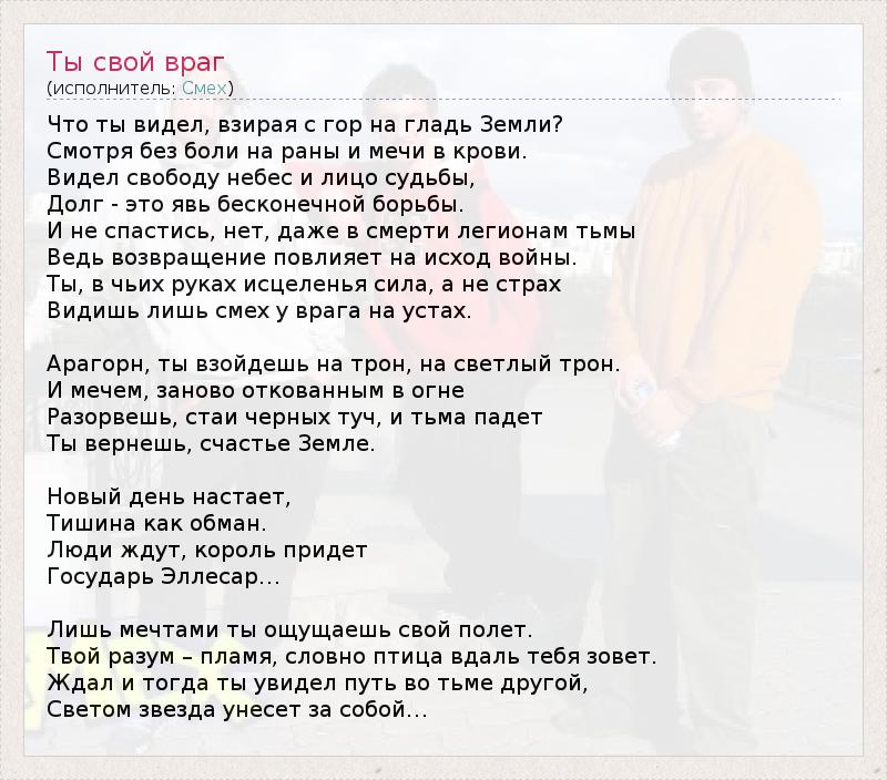 А как ты думаешь, о чем песня "Ты свой враг" ?
