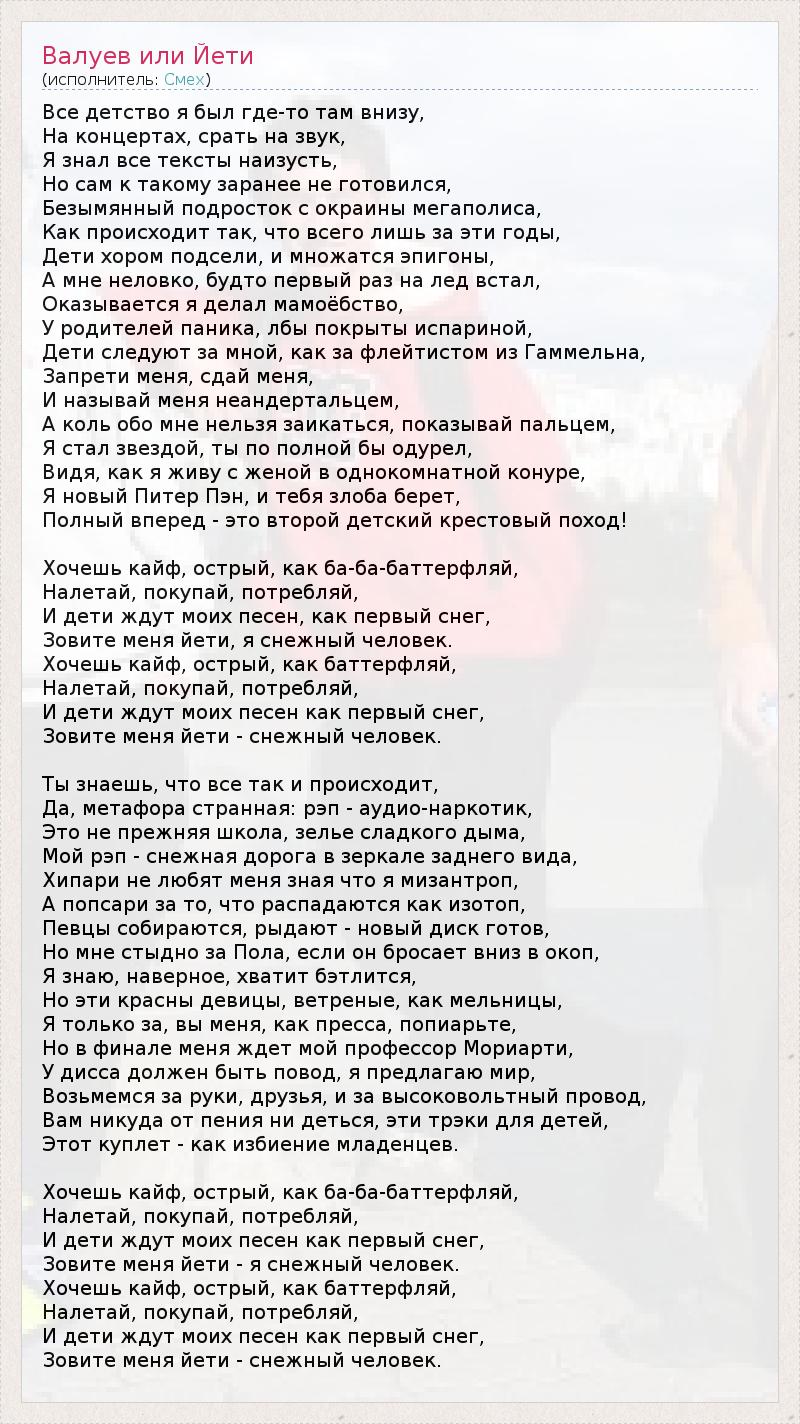 А как ты думаешь, о чем песня "Валуев или Йети" ?