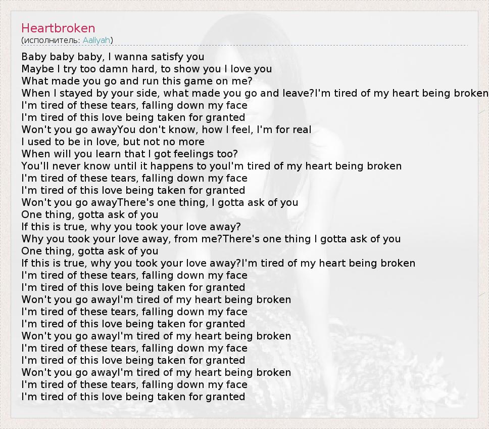 If this is true, why you took your love away?I'm tired of my heart being broken