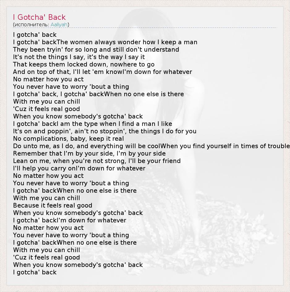 А как ты думаешь, о чем песня "I Gotcha' Back" ?