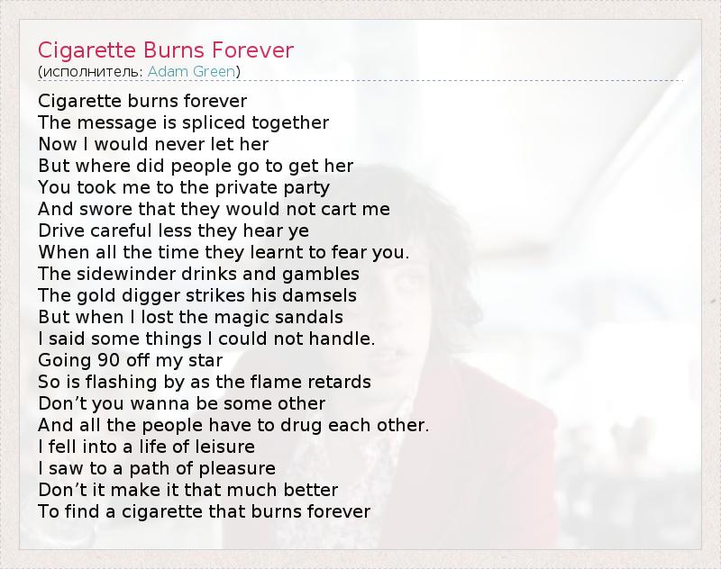 ГлавнаяИсполнителиAdam GreenCigarette Burns Forever