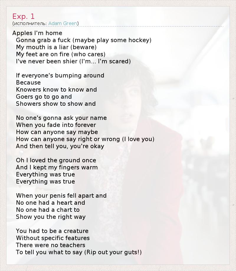 Это интересно:Adam Green. Основатель про-фолк группы The Moldy Peaches, ныне являющийся сольным артистом. Вскоре после её развала - один из идеологов ещё недавно новомодного (в начале 2000-ых) движения антифолк. Эдакой альтернативы всей этой около-экономической шумихе. Мягкого, без противодействия, противопоставления почти субкультуры реальности топ-менеджеров, кредитных линий, дорожных чеков, fast-food и fast-art (fast-movie,... продолжение