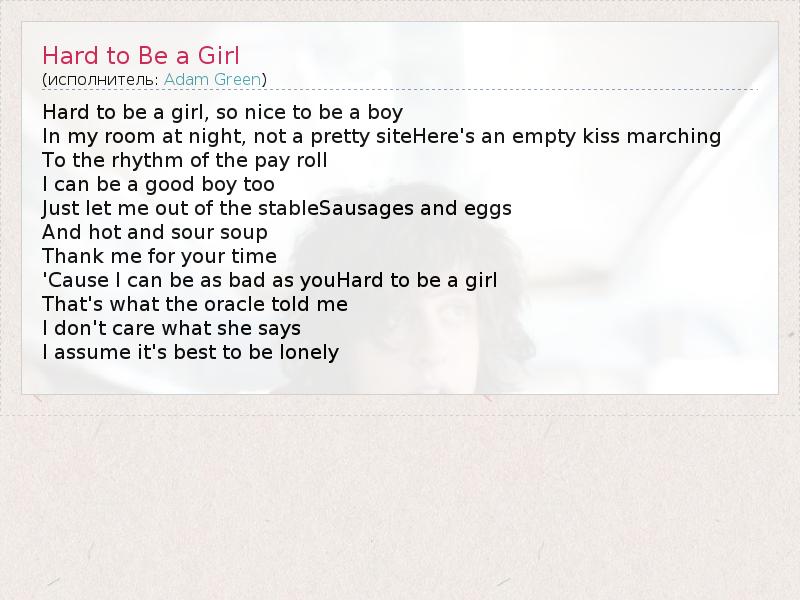 А как ты думаешь, о чем песня "Hard to Be a Girl" ?