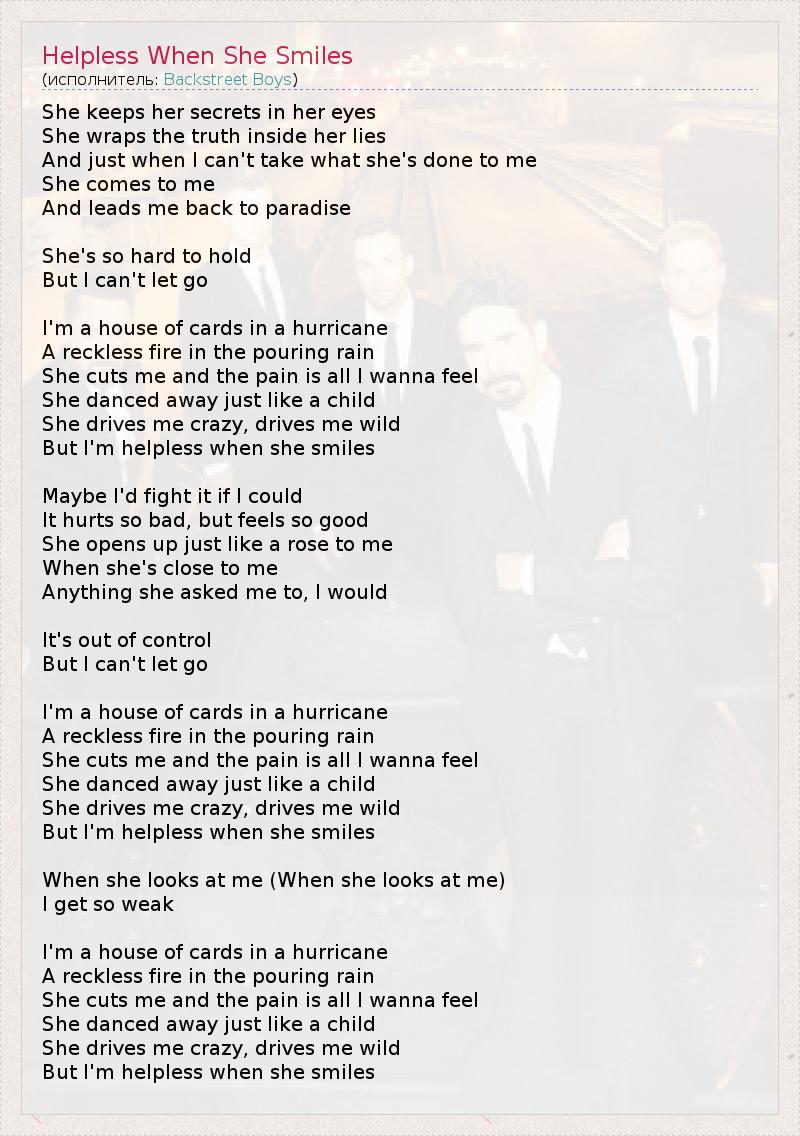 But I'm helpless when she smiles