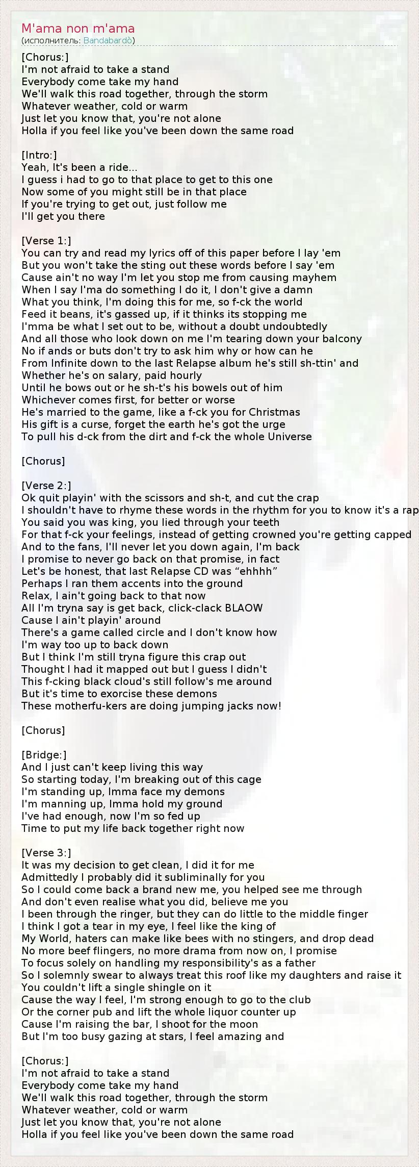Я не должен рифмовать эти слова и складывать их в ритм, ведь вы знаете, что это рэп.