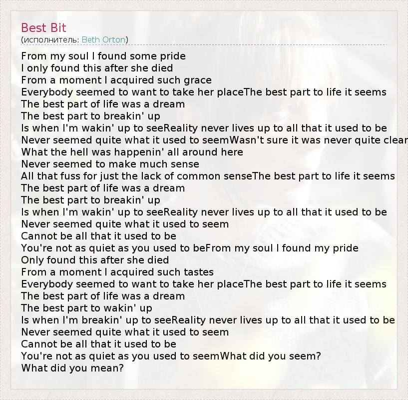 Is when I'm breakin' up to seeReality never lives up to all that it used to be