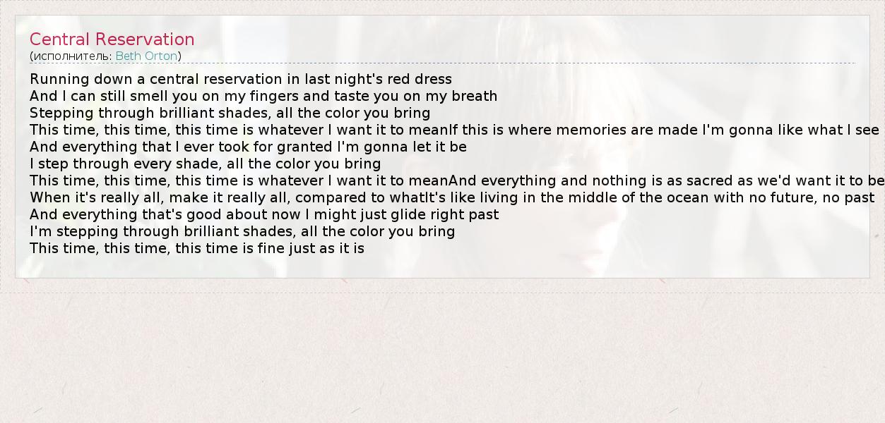 А как ты думаешь, о чем песня "Central Reservation" ?