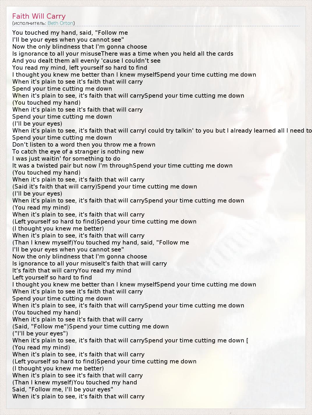 А как ты думаешь, о чем песня "Faith Will Carry" ?