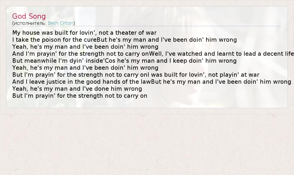 And I'm prayin' for the strength not to carry onWell, I've watched and learnt to lead a decent life
