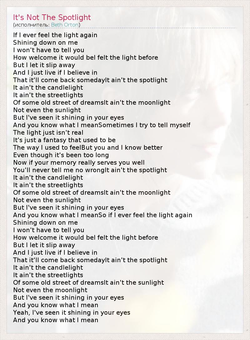 ГлавнаяИсполнителиBeth OrtonIt's Not The Spotlight