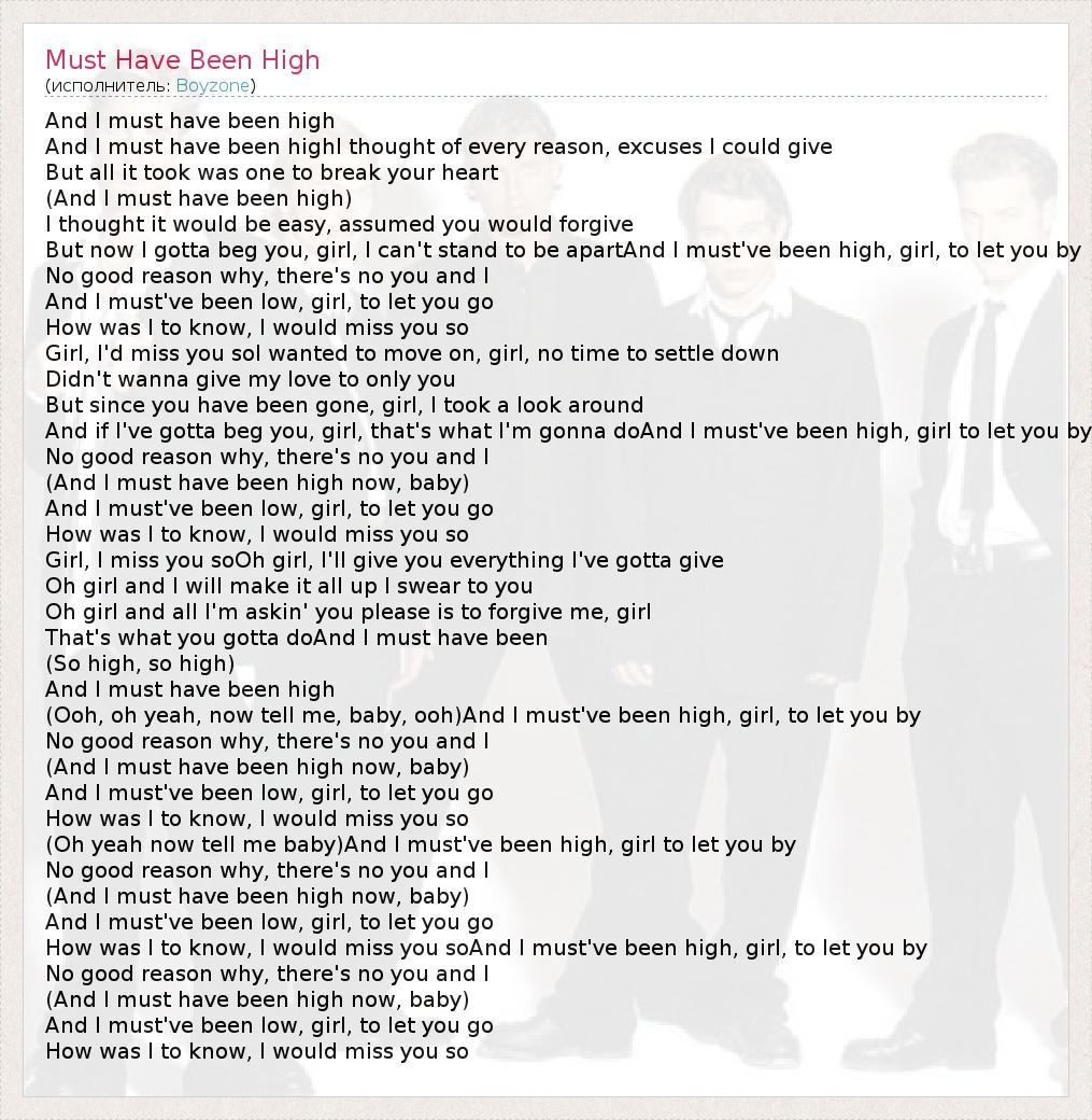 А как ты думаешь, о чем песня "Must Have Been High" ?
