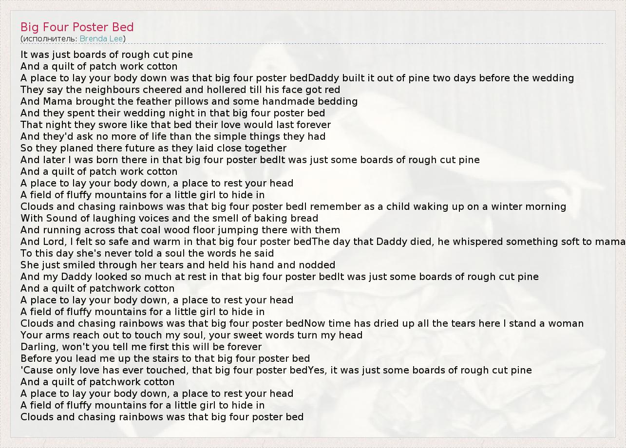 А как ты думаешь, о чем песня "Big Four Poster Bed" ?