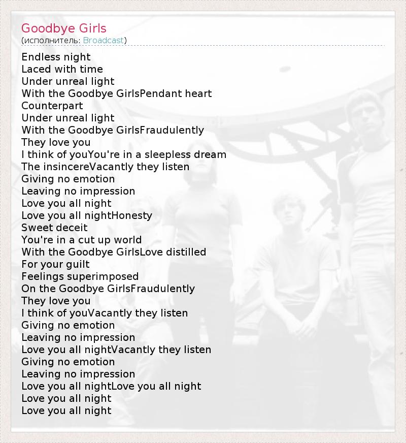 А как ты думаешь, о чем песня "Goodbye Girls" ?