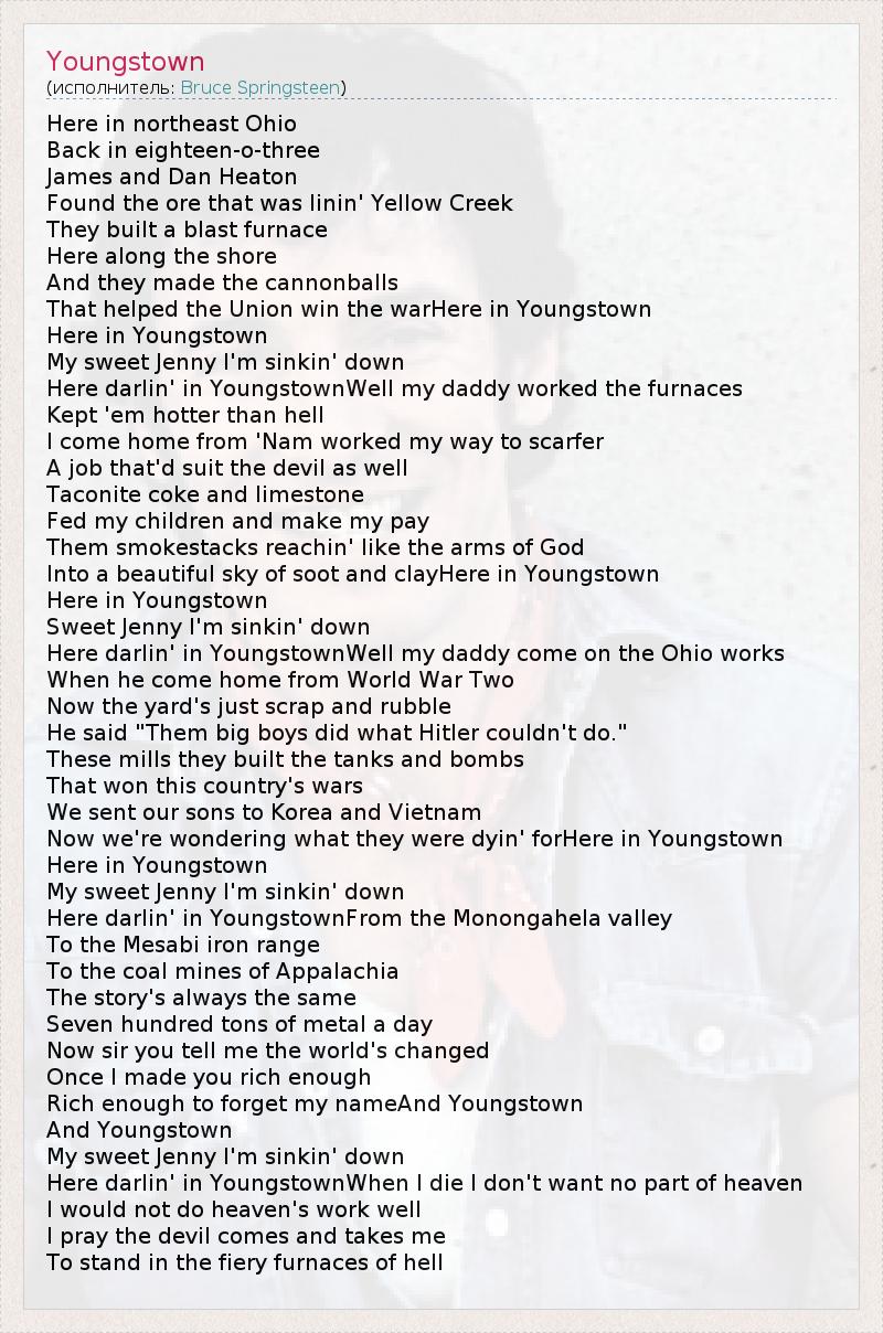 Here darlin' in YoungstownWell my daddy come on the Ohio works