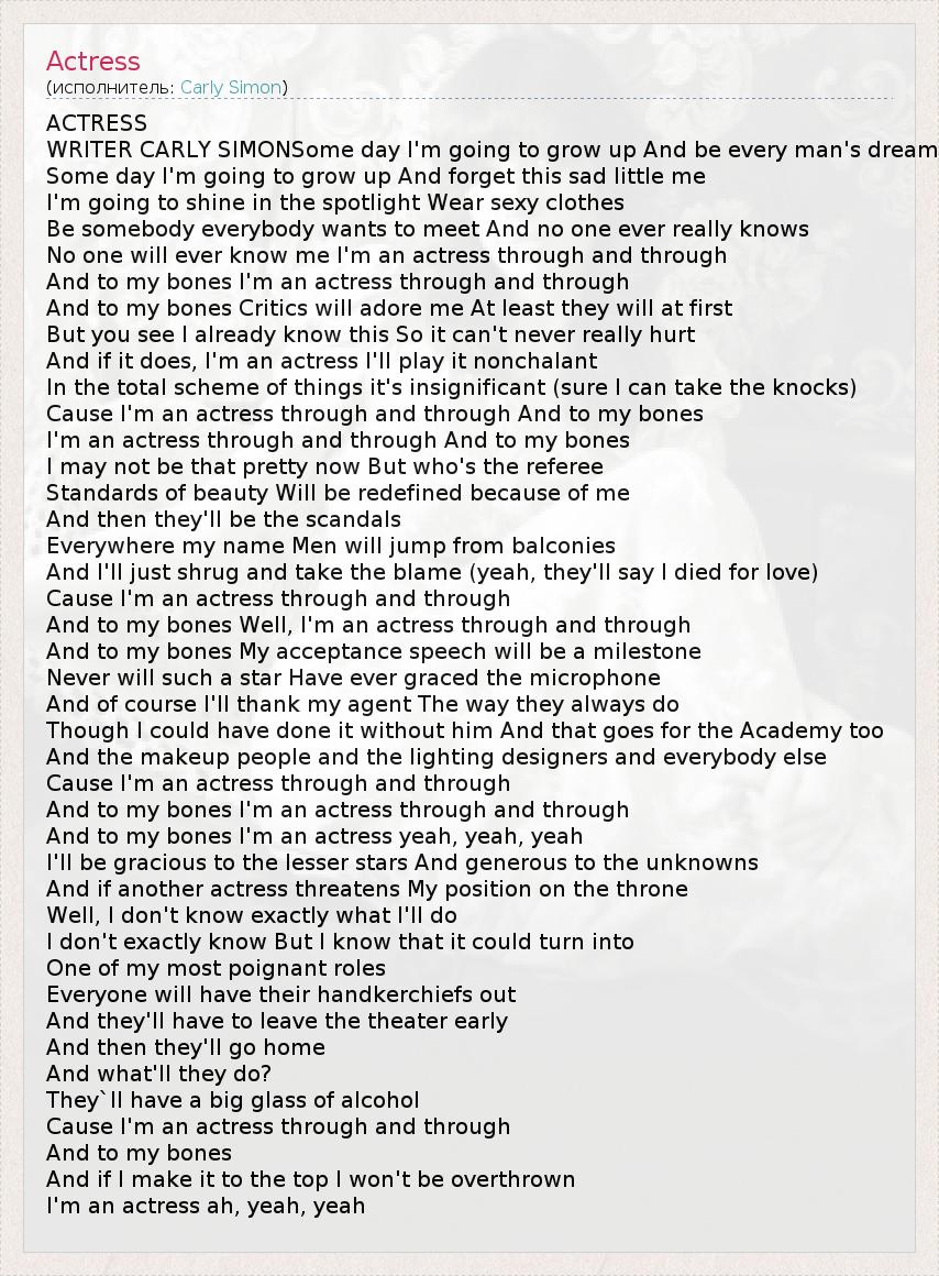 А как ты думаешь, о чем песня "Actress" ?