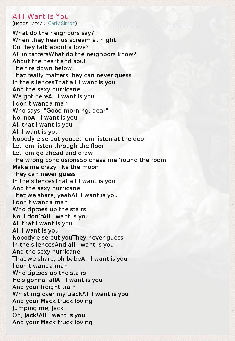 А как ты думаешь, о чем песня "All I Want Is You" ?