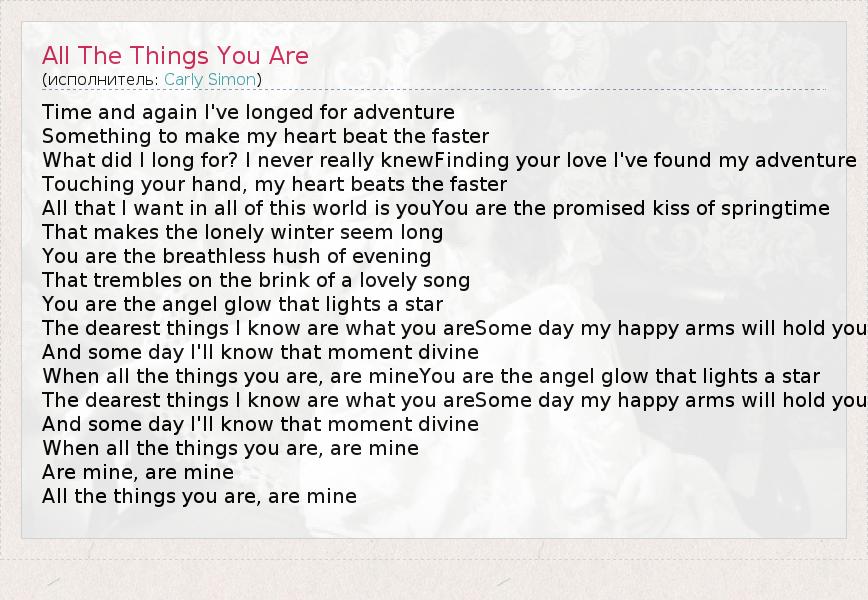 А как ты думаешь, о чем песня "All The Things You Are" ?