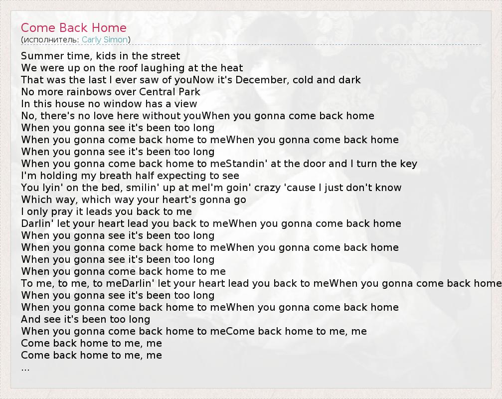 А как ты думаешь, о чем песня "Come Back Home" ?