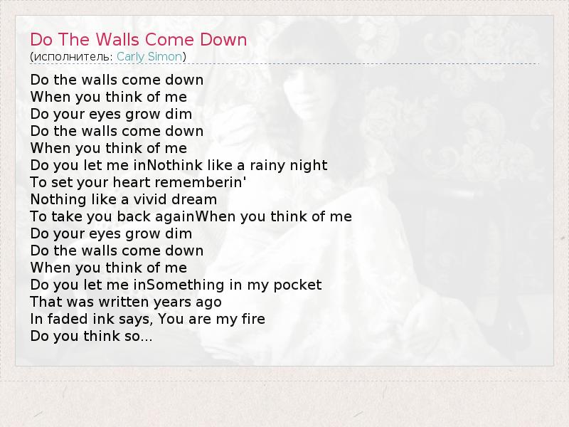 А как ты думаешь, о чем песня "Do The Walls Come Down" ?