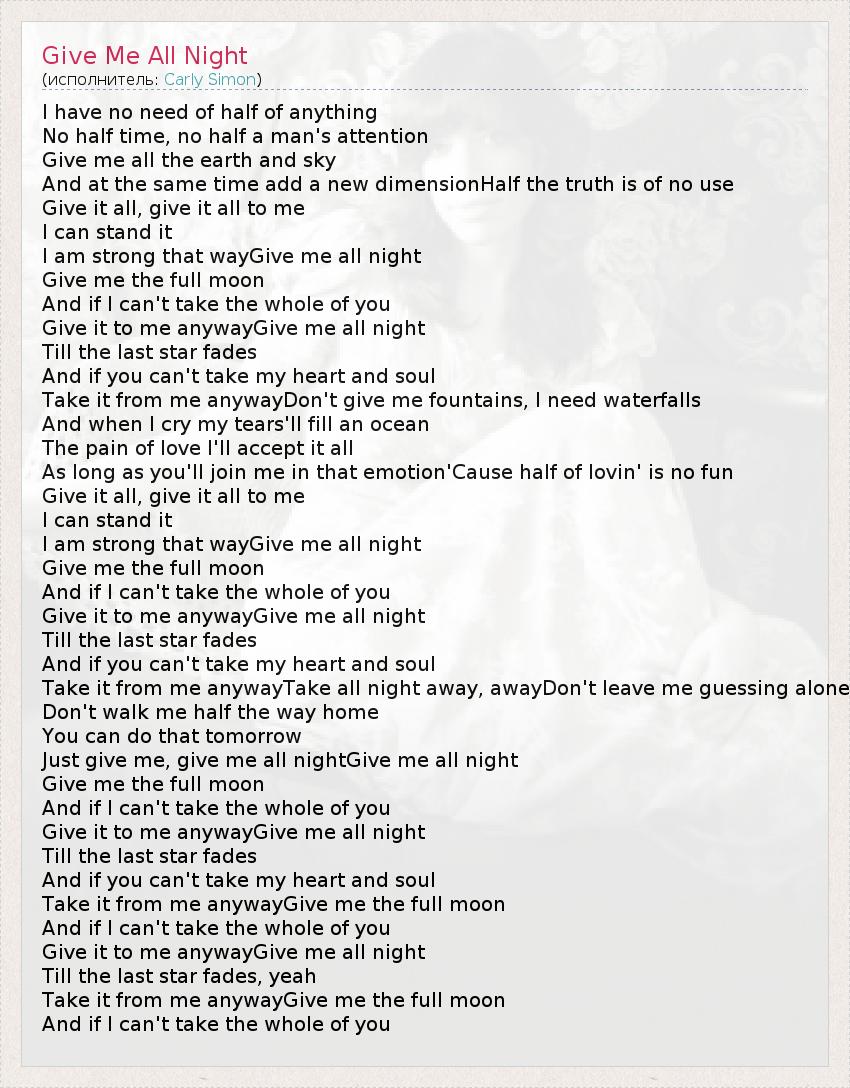 Just give me, give me all nightGive me all night