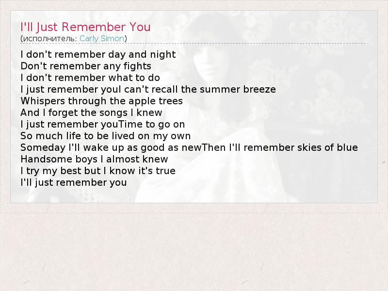 А как ты думаешь, о чем песня "I'll Just Remember You" ?