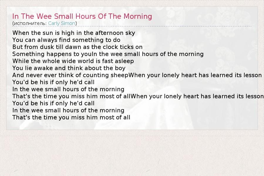 А как ты думаешь, о чем песня "In The Wee Small Hours Of The Morning" ?
