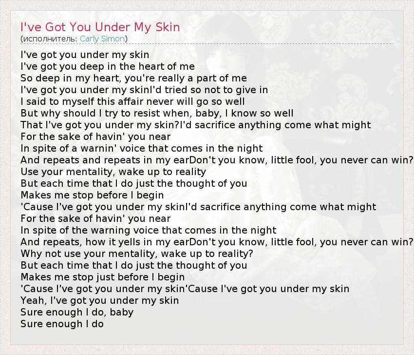 'Cause I've got you under my skin'Cause I've got you under my skin