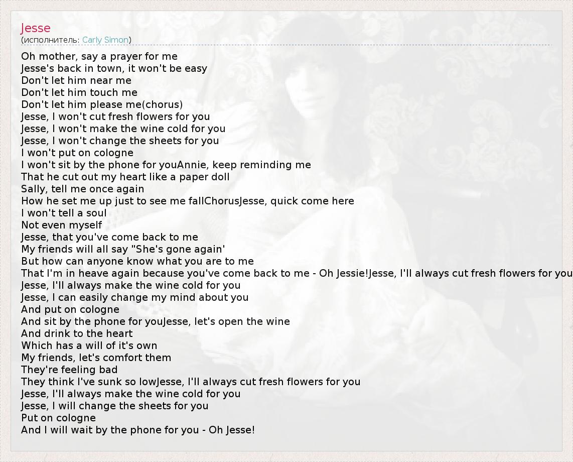 That I'm in heave again because you've come back to me - Oh Jessie!Jesse, I'll always cut fresh flowers for you