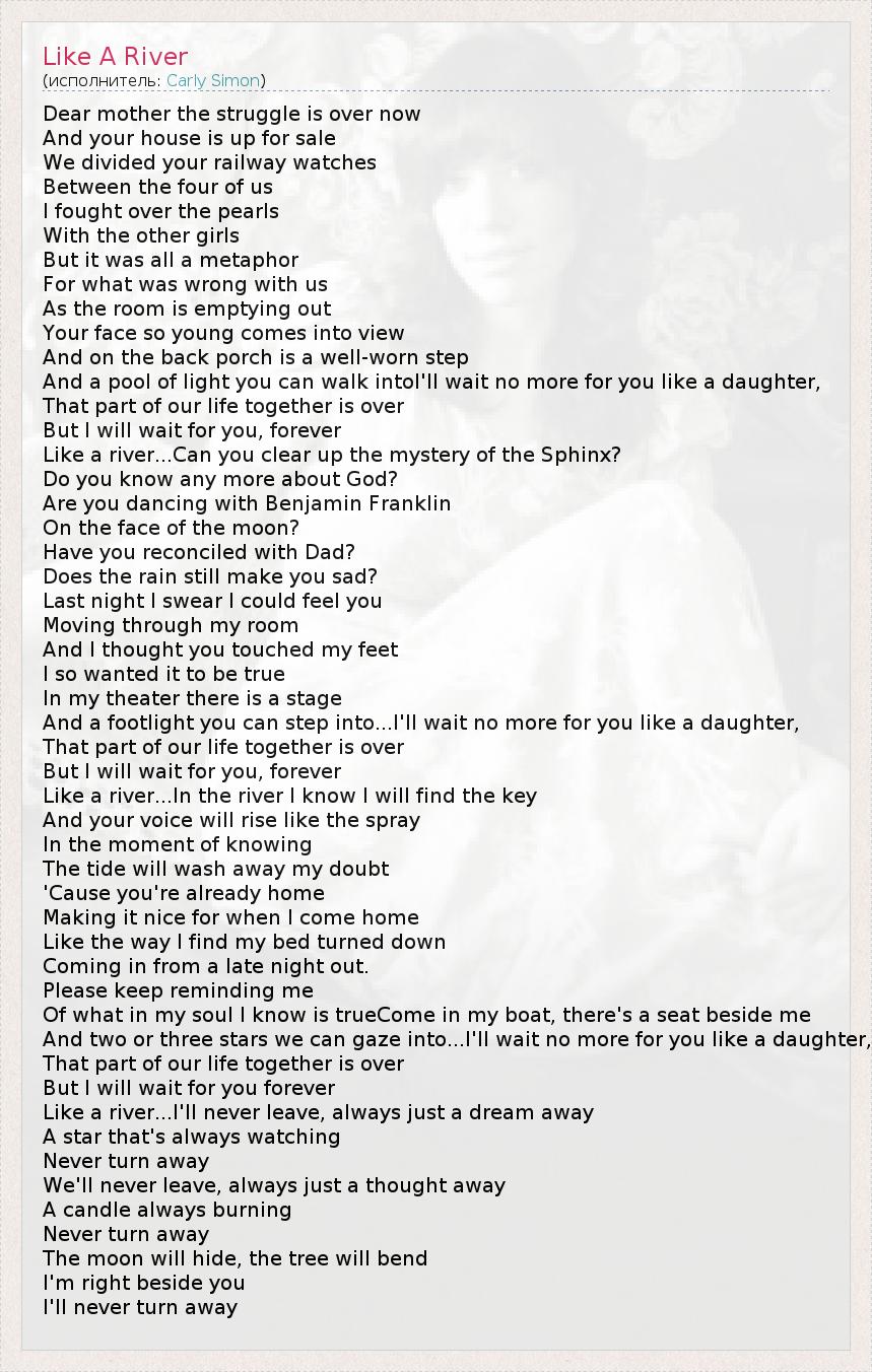 And a pool of light you can walk intoI'll wait no more for you like a daughter,
