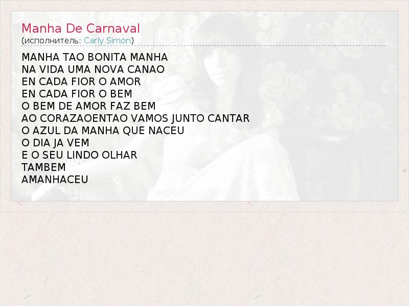 А как ты думаешь, о чем песня "Manha De Carnaval" ?