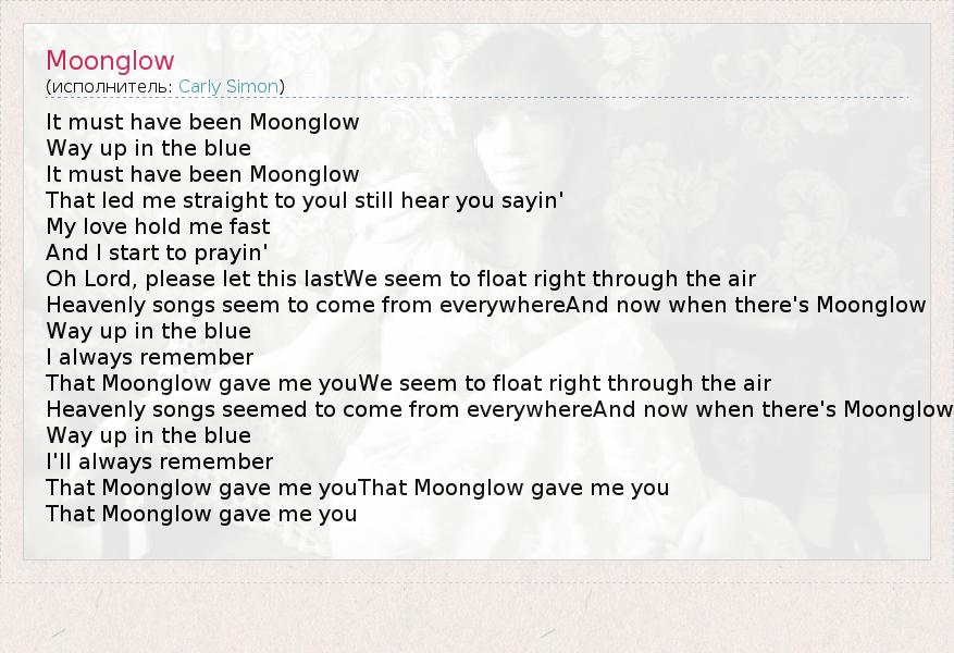 Heavenly songs seemed to come from everywhereAnd now when there's Moonglow