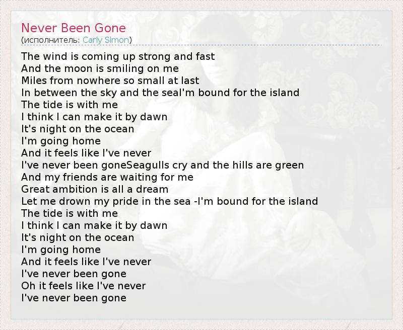 А как ты думаешь, о чем песня "Never Been Gone" ?
