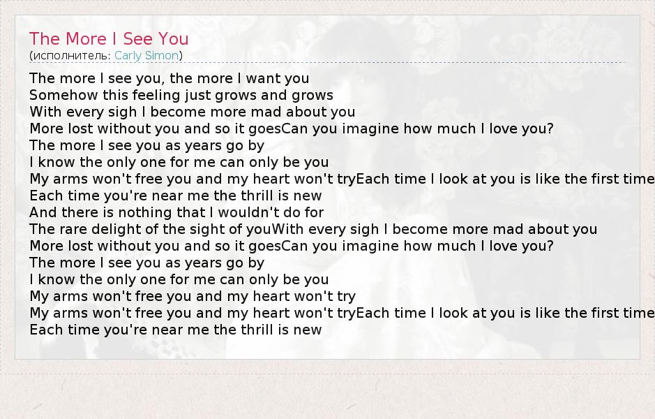 А как ты думаешь, о чем песня "The More I See You" ?