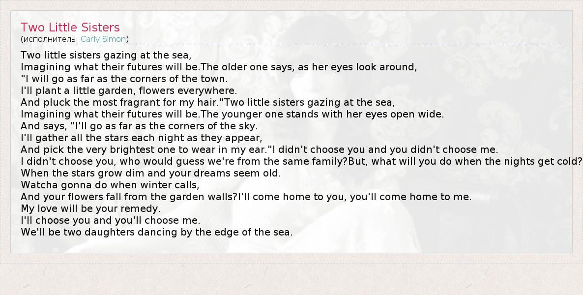 А как ты думаешь, о чем песня "Two Little Sisters" ?