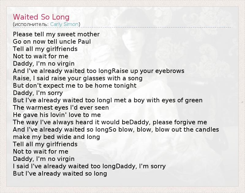 А как ты думаешь, о чем песня "Waited So Long" ?