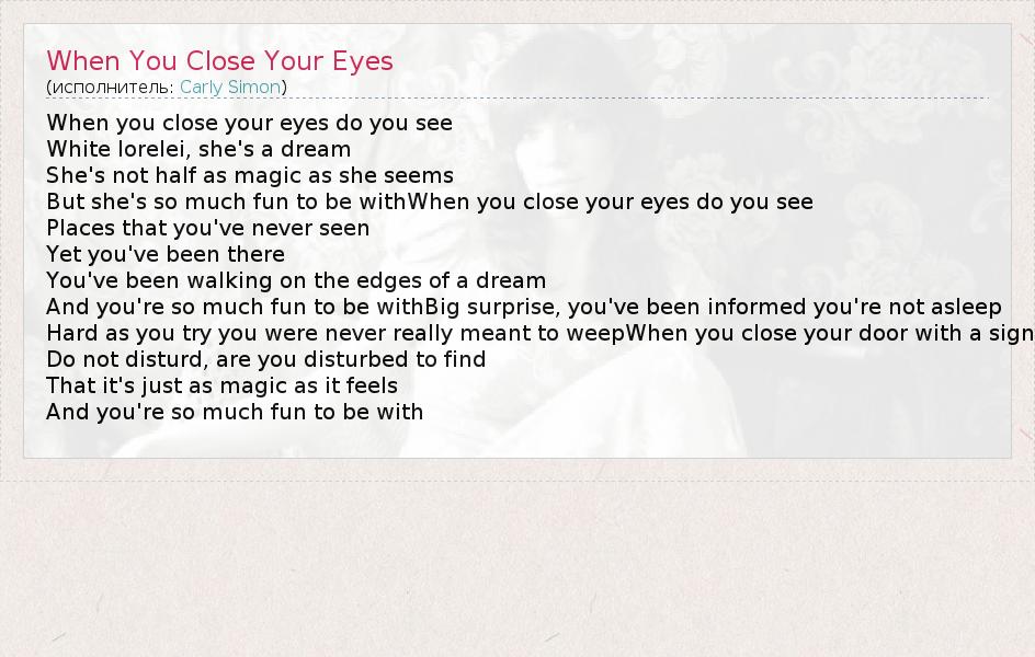 ГлавнаяИсполнителиCarly SimonWhen You Close Your Eyes