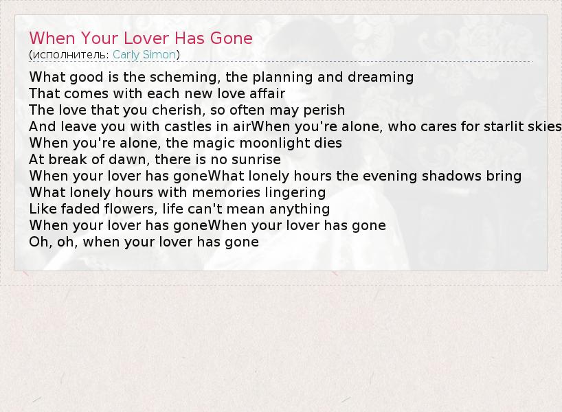 ГлавнаяИсполнителиCarly SimonWhen Your Lover Has Gone